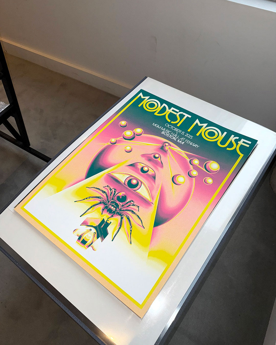 Modest Mouse | Boston, MA Sérigraphie officielle Concert au MGM Music Hall at Fenway, octobre 2025 Design de l'artiste LIORZH (Gabriel Picard) Edition limitée de 25 ex. (épreuves de l'artiste) Signée... Voir la description complète du produit