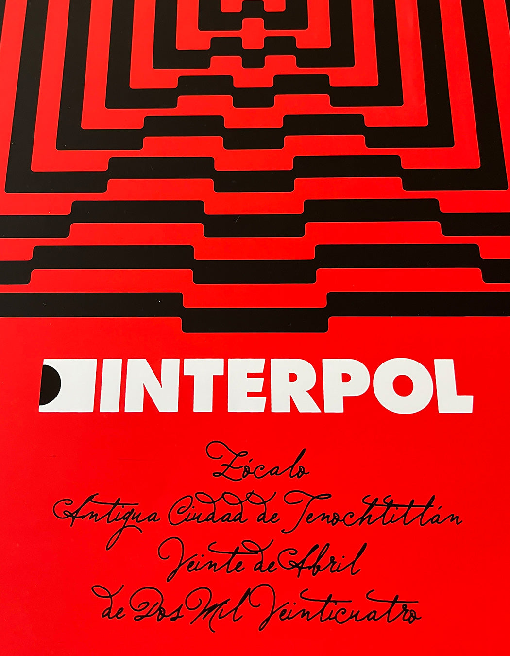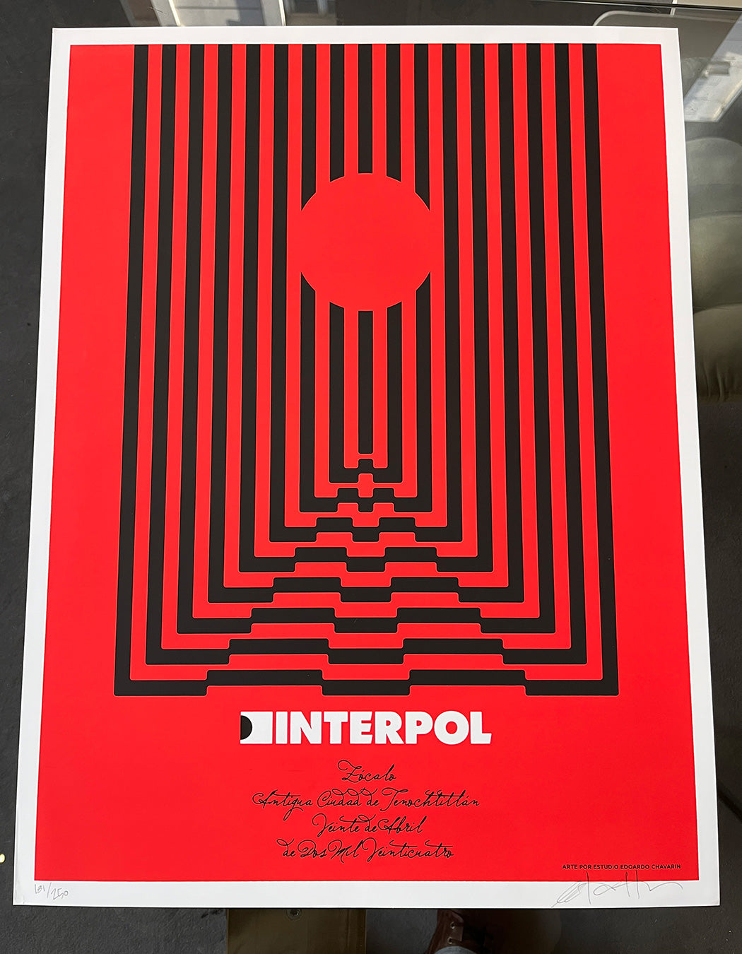 Interpol | México Sérigraphie officielle - Antics 20th Anniversary Tour Concert à Zócalo CDMX, 20.04.2024 Design de l'artiste Edoardo Chavarin Edition limitée signée de 250 ex. Format 46 x 61 cm Voir la description complète du produit
