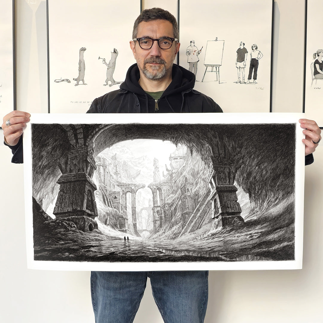 Découverte de la grotte d'après "Les Montagnes Hallucinées" de HP Lovecraft Illustré par François BARANGER Tirage pigmentaire giclée sur papier Fine Art 250g/m2 Edition limitée de 120 exemplaires Tirage numéroté... Voir la description complète du produit
