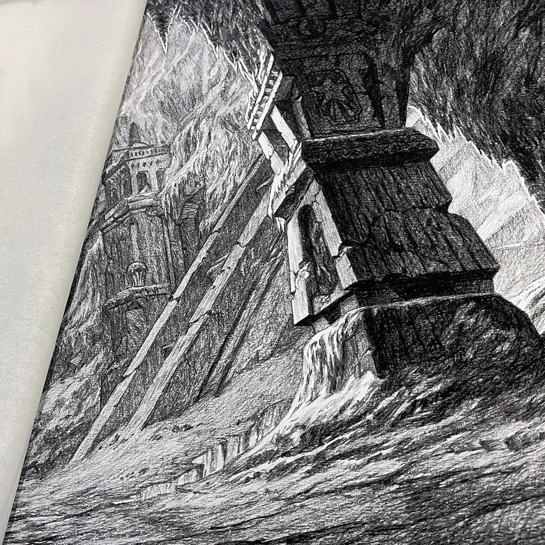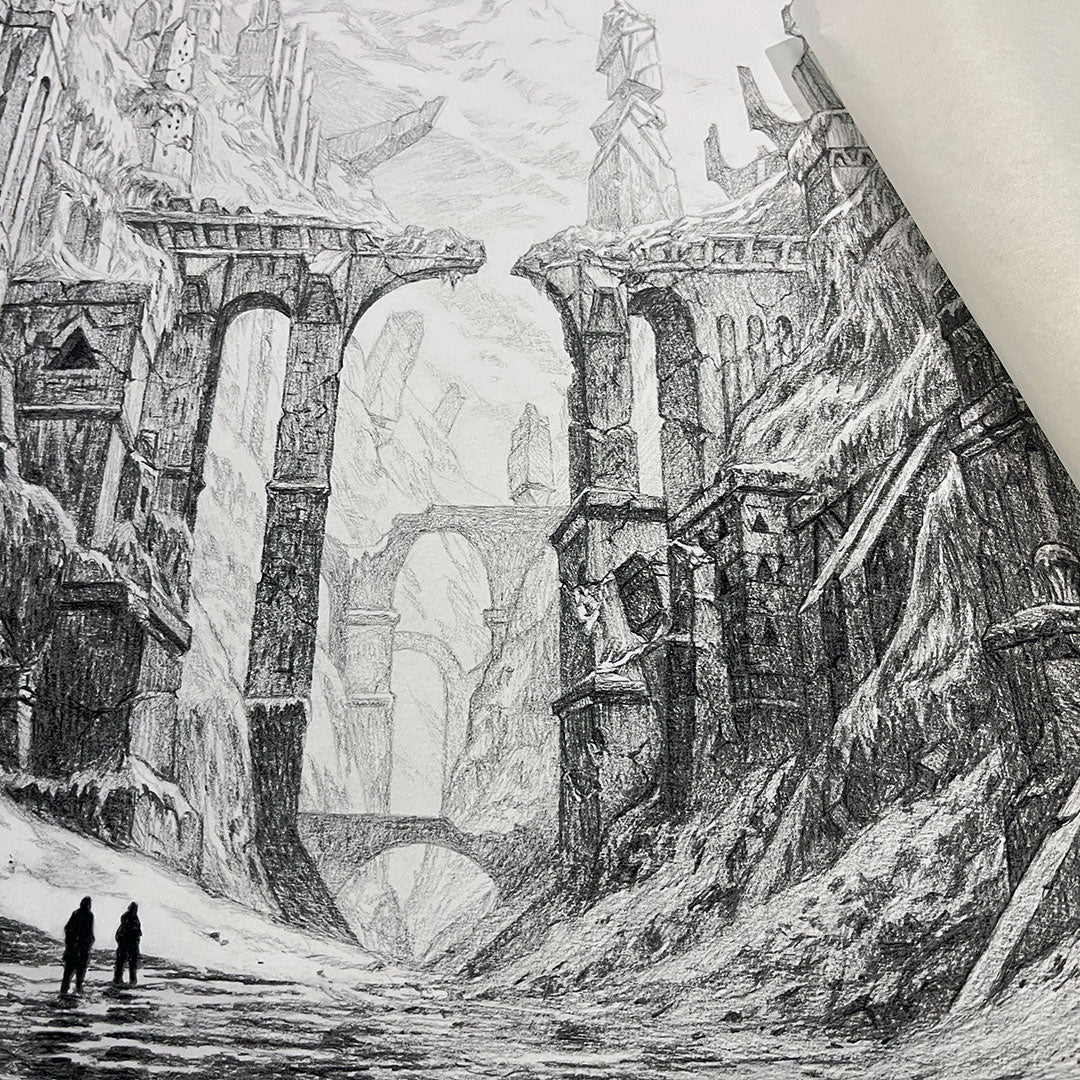 Les montagnes hallucinées (vue 1) Dessin | Cthulhurama D'après HP Lovecraft Illustration de l'artiste François Baranger Edition limitée de seulement 50 exemplaires Tirage numéroté & signé par l'artiste Très Grand format:... Voir la description complète du produit